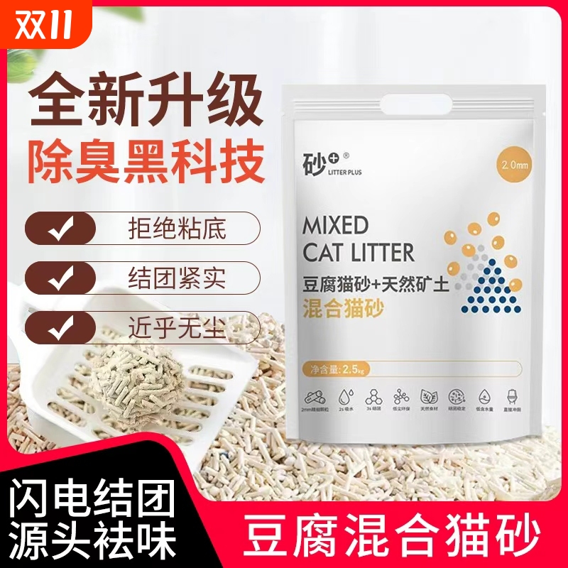 豆腐猫砂三合一除臭吸水混合猫砂高效结团膨润土科学配比猫砂低尘