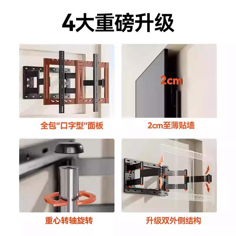 超薄电视机挂架伸缩旋转壁挂墙支架适用于小米海信TCL索尼7585寸