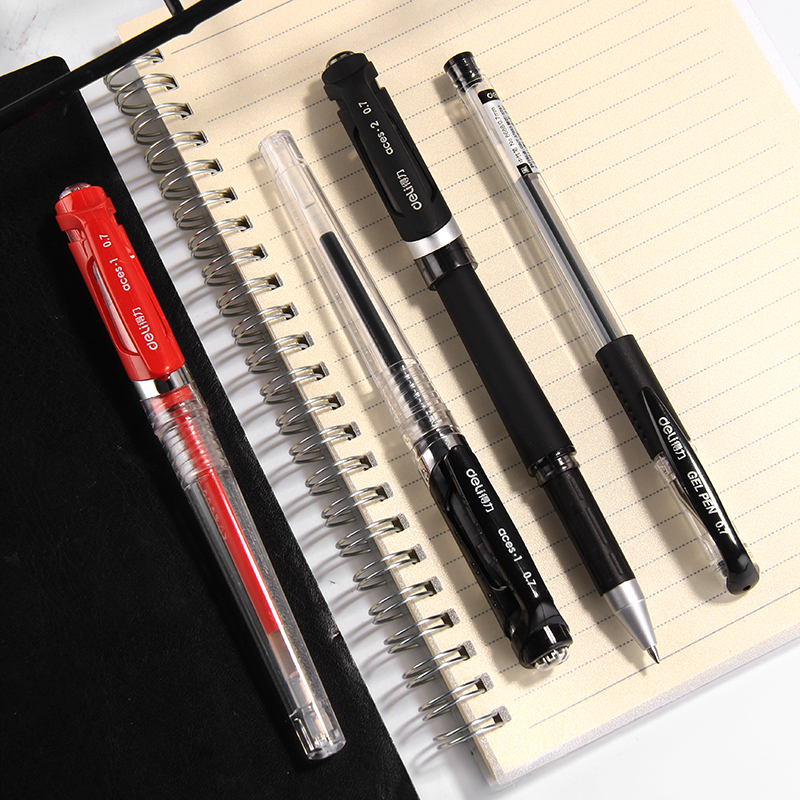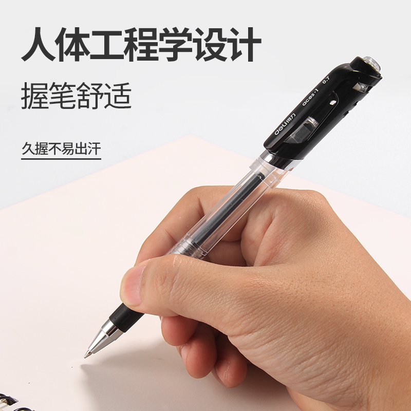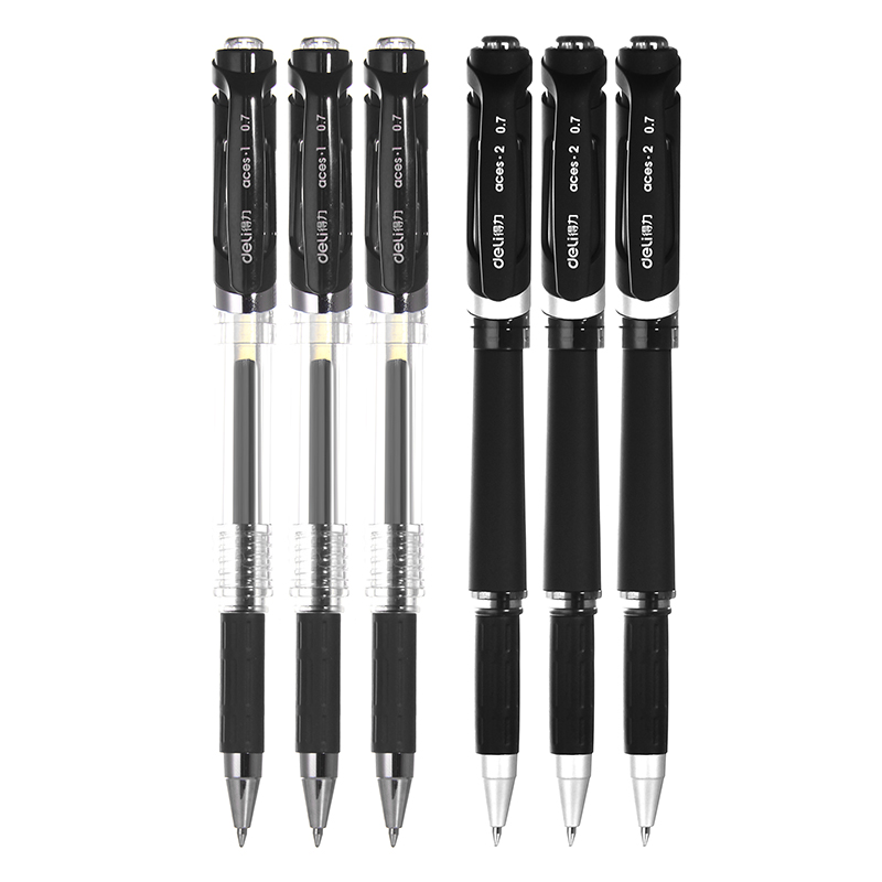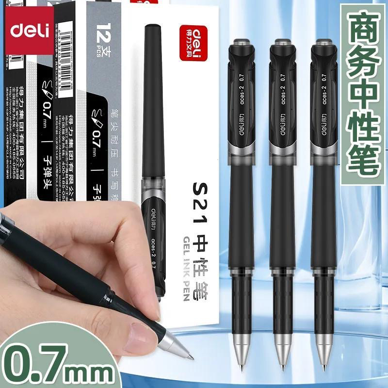 得力中性笔0.7mm子弹头黑色加粗商务办公签名笔磨砂笔杆水性笔