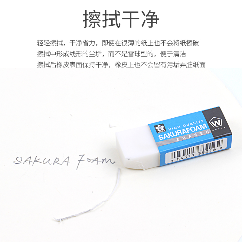 日本樱花橡皮擦少屑干净小学生用文具Sakura美术素描绘图画可爱创意2b象皮不留痕擦的自动铅笔4B像皮擦