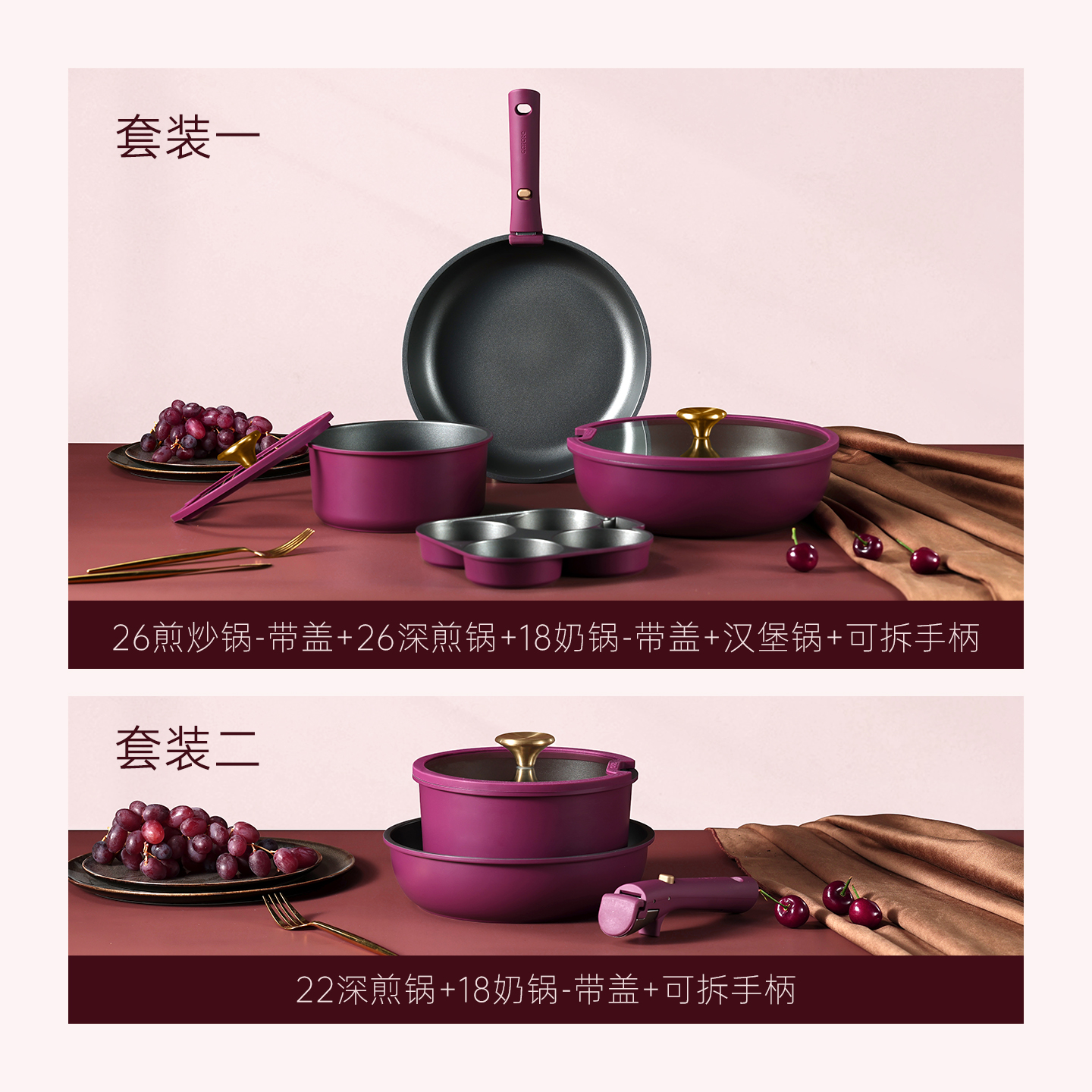 卡罗特不粘锅可拆卸手柄锅家用平底煎炒钛锅奶锅锅具套装全套家用