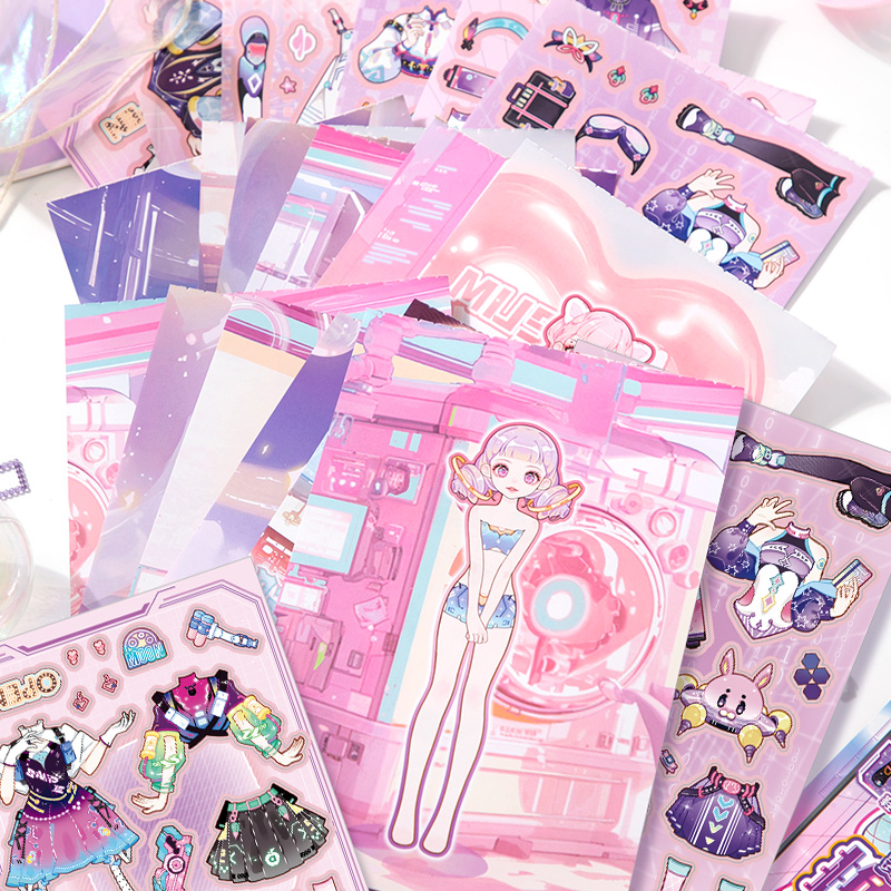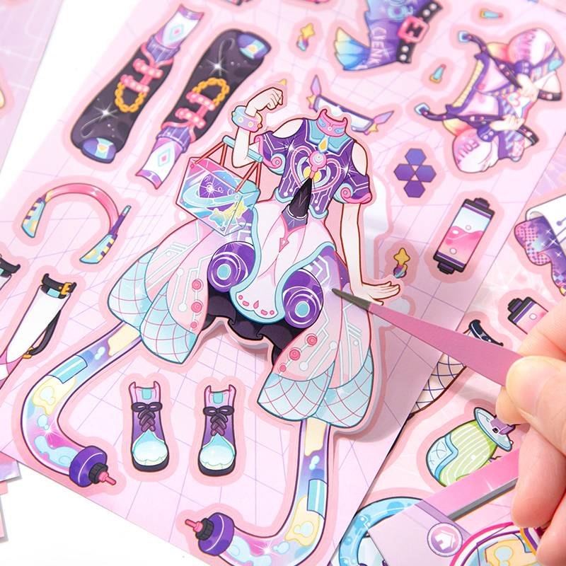(免剪裁直接玩)赛博公主不重复可爱人物换装游戏贴纸手帐DIY56789岁女孩生日礼物少女心手账咕卡手机壳装饰