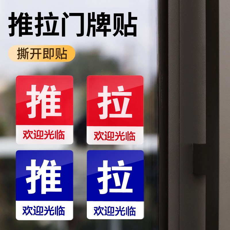 推拉门贴门牌玻璃透明推拉字标识牌子亚克力左右移门贴纸订制创意