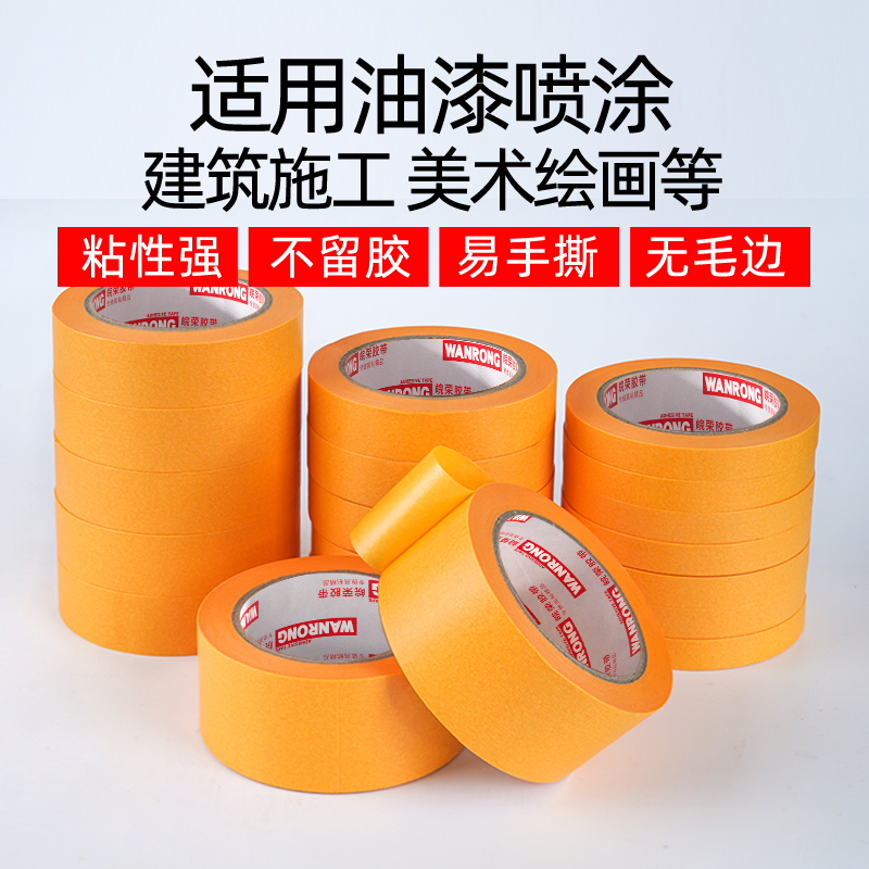 皖荣和纸美纹纸胶带分色纸墙面不易留胶痕喷漆遮蔽瓷砖美缝装修7388黄色无痕保护膜美文纸胶带50米大卷整箱批