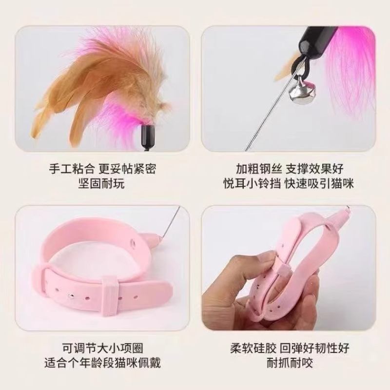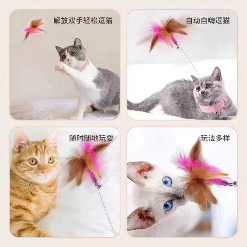 头戴式猫咪自嗨解闷消耗体力神器自动羽毛项圈逗猫用品逗猫棒玩具
