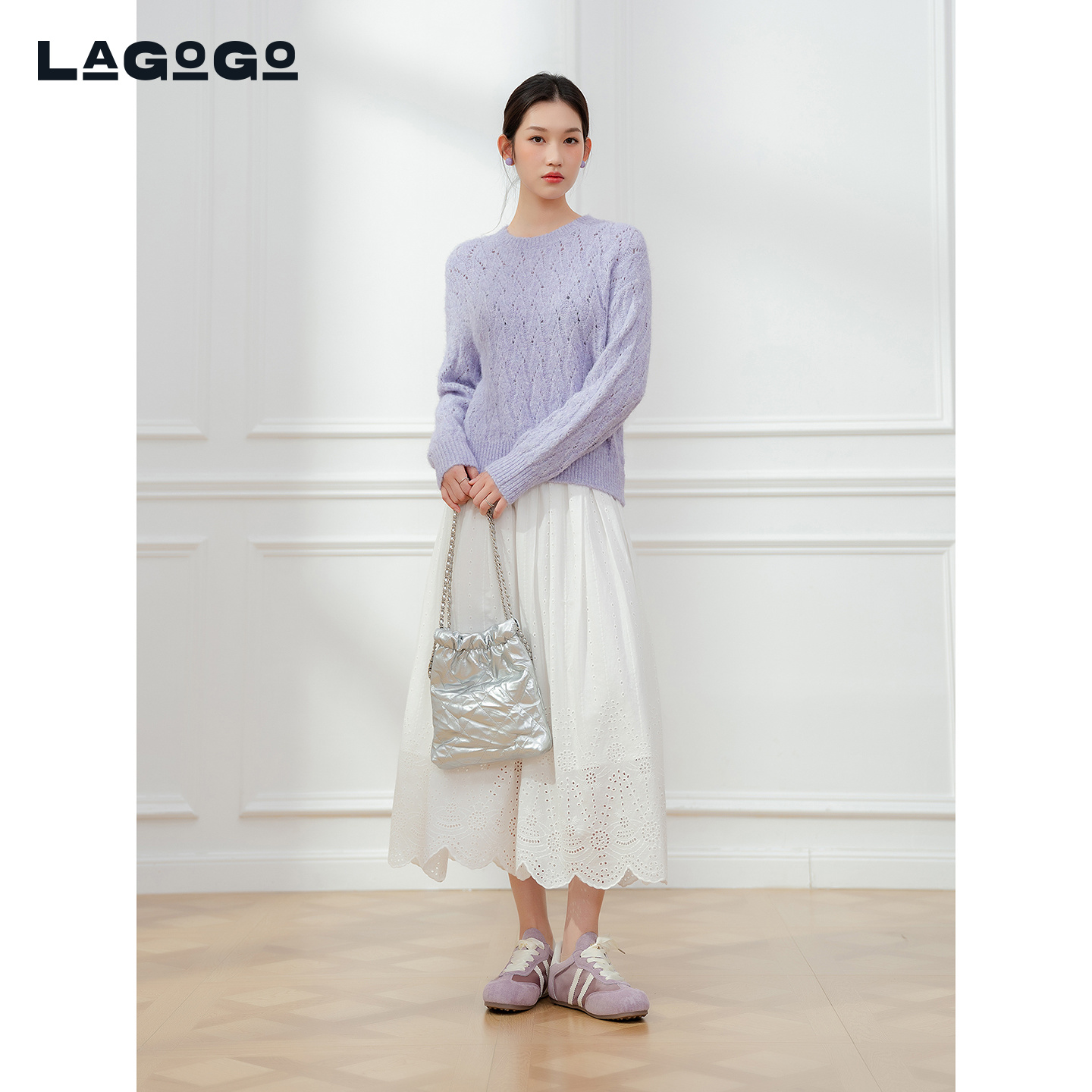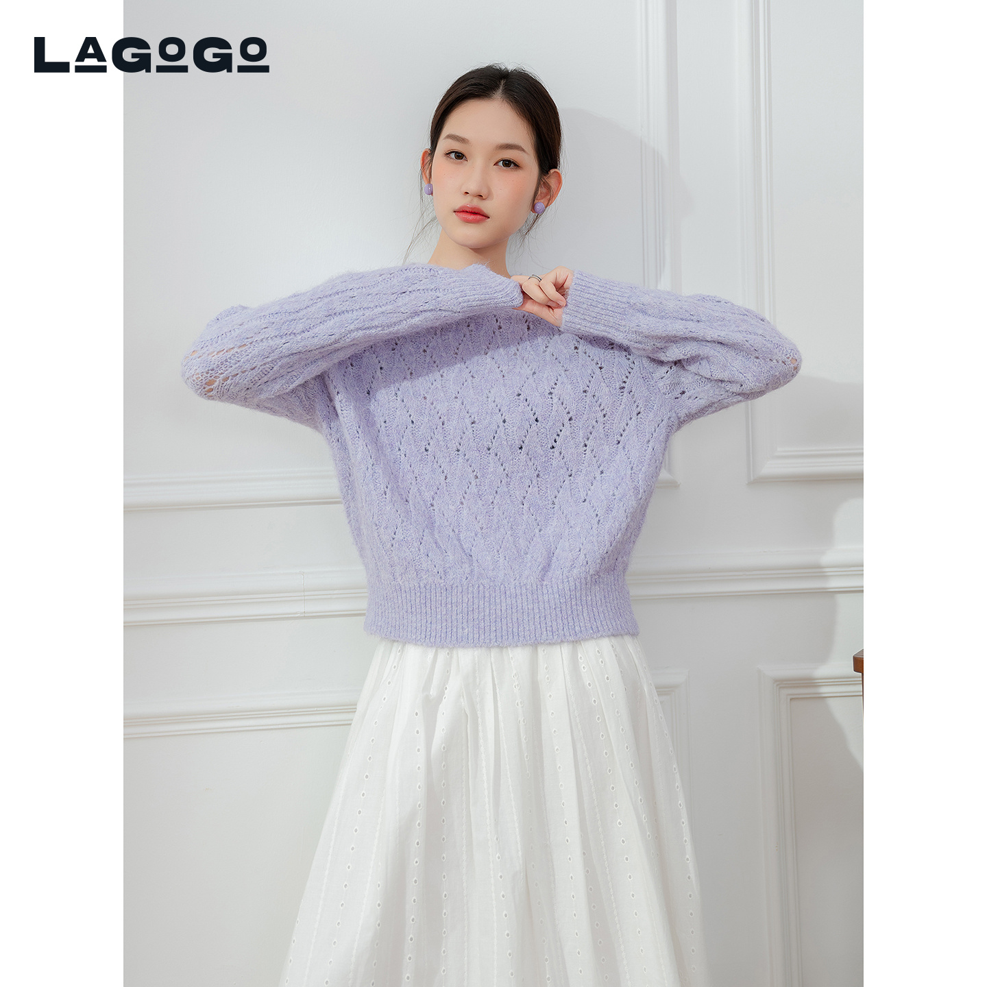 LAGOGO含羊毛绞花针织衫女拉谷谷2025冬季新款温柔上衣OCMM499K22