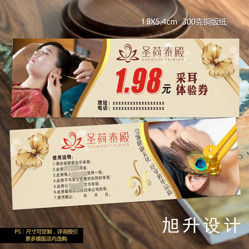 采耳体验券清洁耳道洗耳中耳炎优惠券代金券拓客活动卡片设计印刷