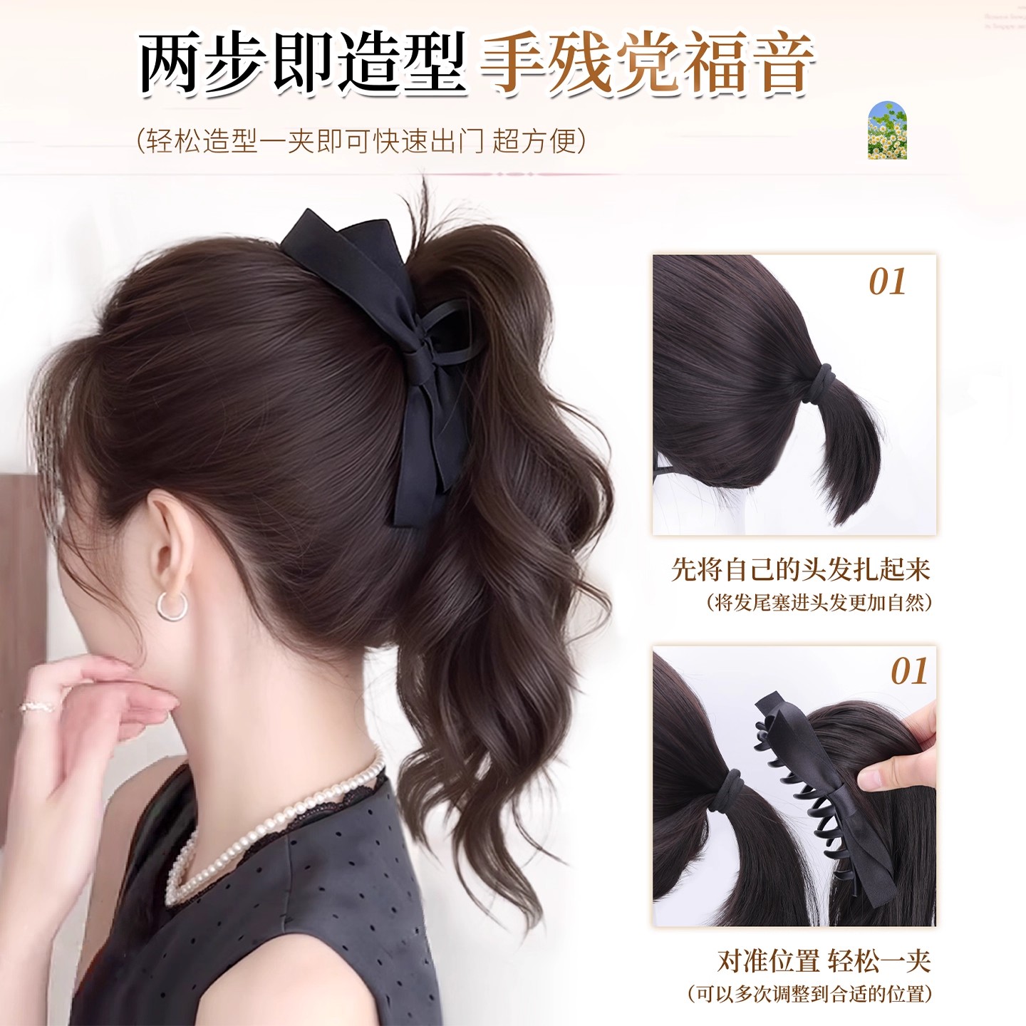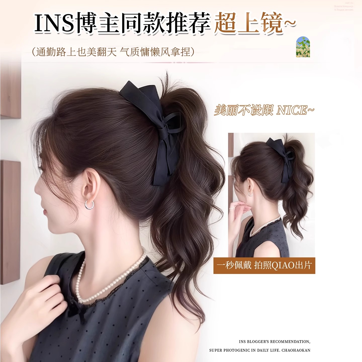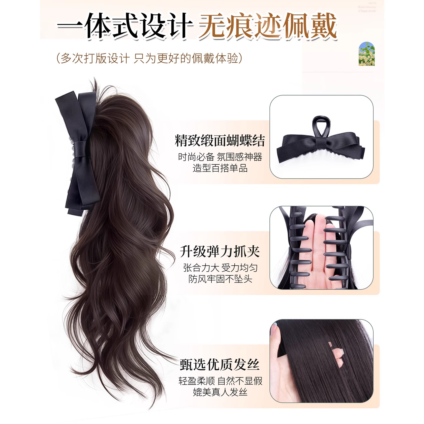 假发辫自然女仿真发蝴蝶结抓夹卷马尾马尾增发量假发造型人发