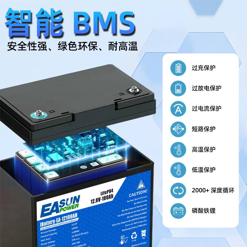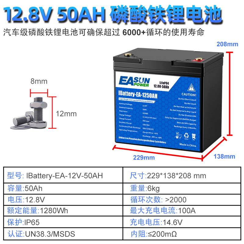 12.8V100AH容量磷酸铁锂电池大功率太阳能光伏储能蓄电池