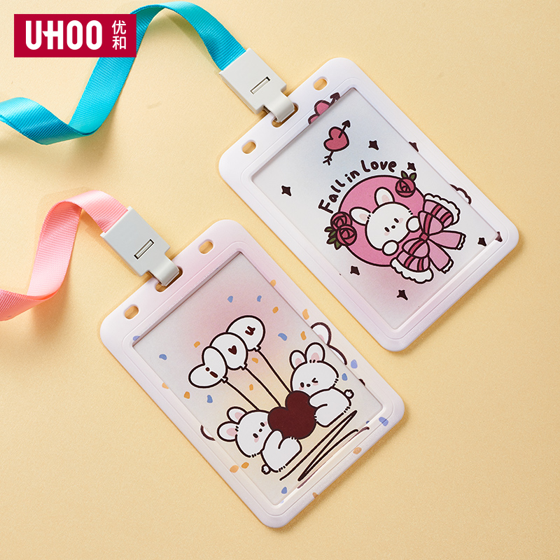 UHOO优和文创卡通动物小中大学生卡套可爱带挂绳耐用吊牌校园胸牌工牌证件套校牌饭卡透明公交卡门禁卡保护套