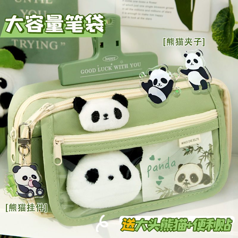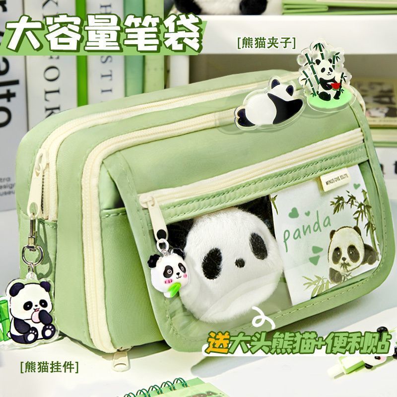 大头熊猫笔袋女生2年新款儿童大容量初中小学生女孩文具铅笔盒