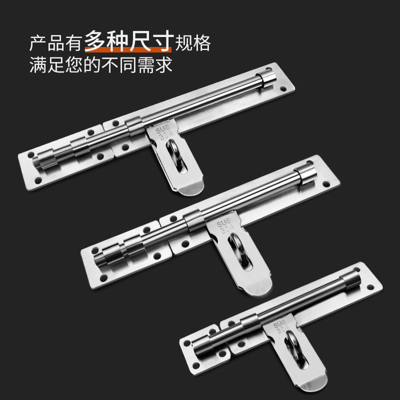 304不锈钢插销门栓明装老式大号防盗门挂锁免打孔木门固定门锁扣