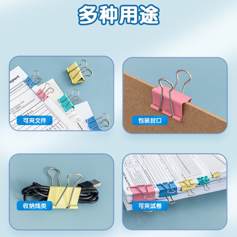 晨光长尾夹混合装彩色文件夹子办公用品文具燕尾夹雁尾夹凤尾夹票夹大号小号多功能试卷混装50mm不锈钢小夹子