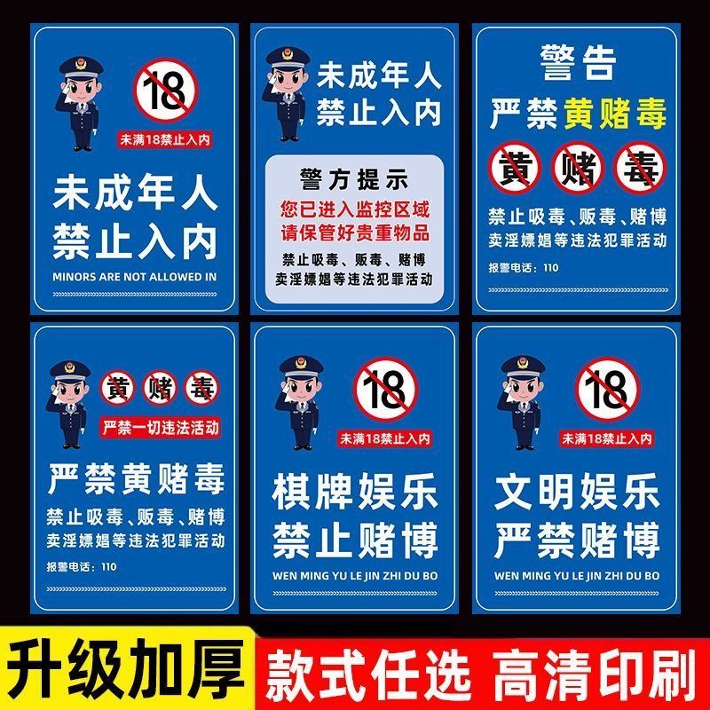 禁止黄赌毒提示牌严禁赌博未成年人入内三禁警示娱乐牌ktv酒店棋牌室娱乐场所标识餐厅监控进入警告区域防水
