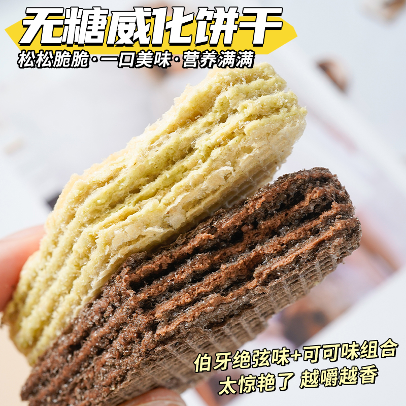 伯牙绝弦无糖威化饼干巧克力孕妇糖友抗饿饱腹能量棒代餐零食