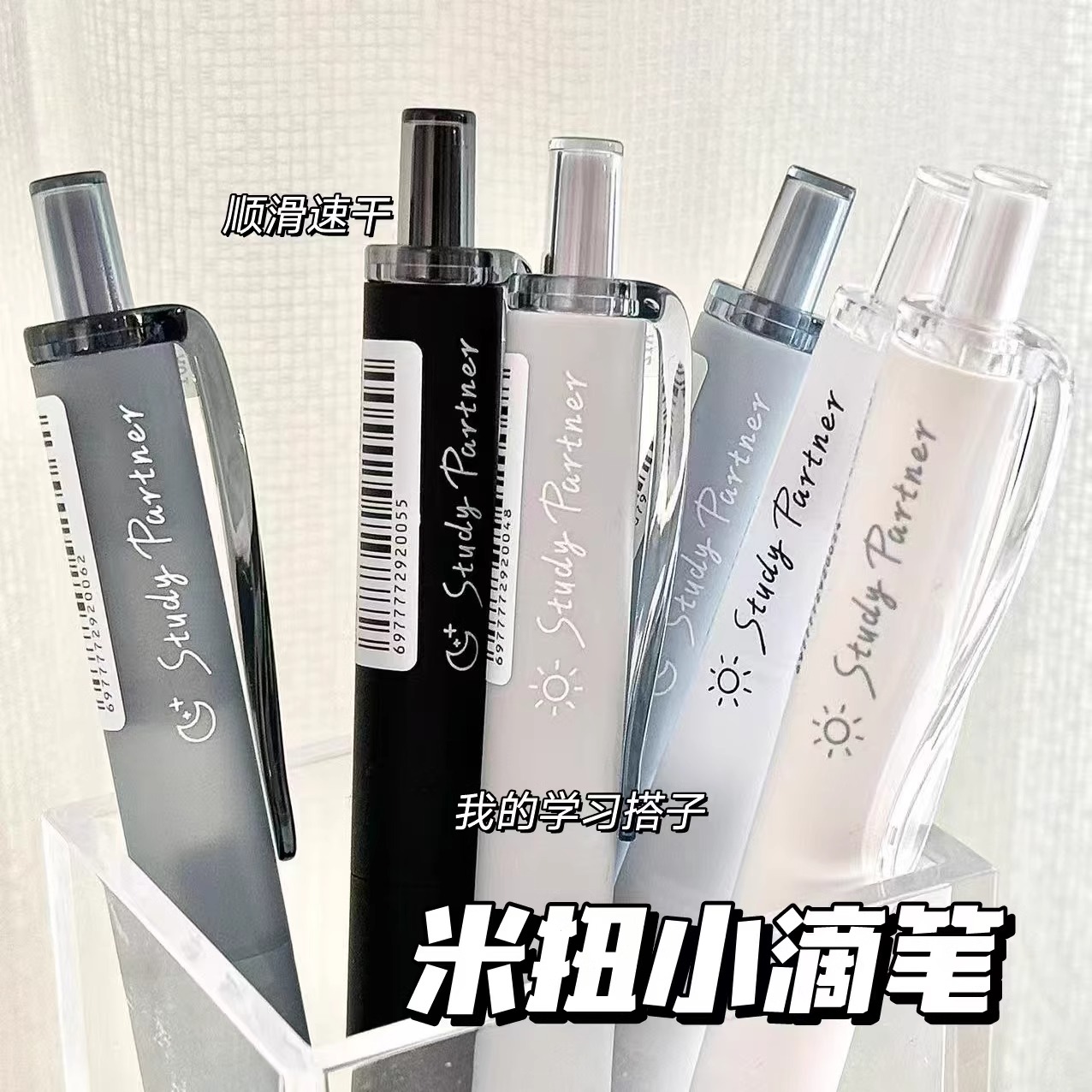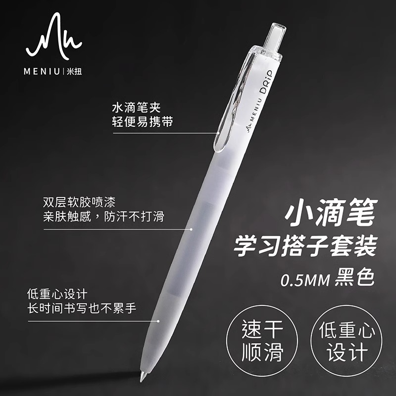 米扭小滴笔中性笔按动水笔大容量黑笔0.5mm学生高颜值刷题考试笔浓墨笔顺滑好写一套可换替芯双珠