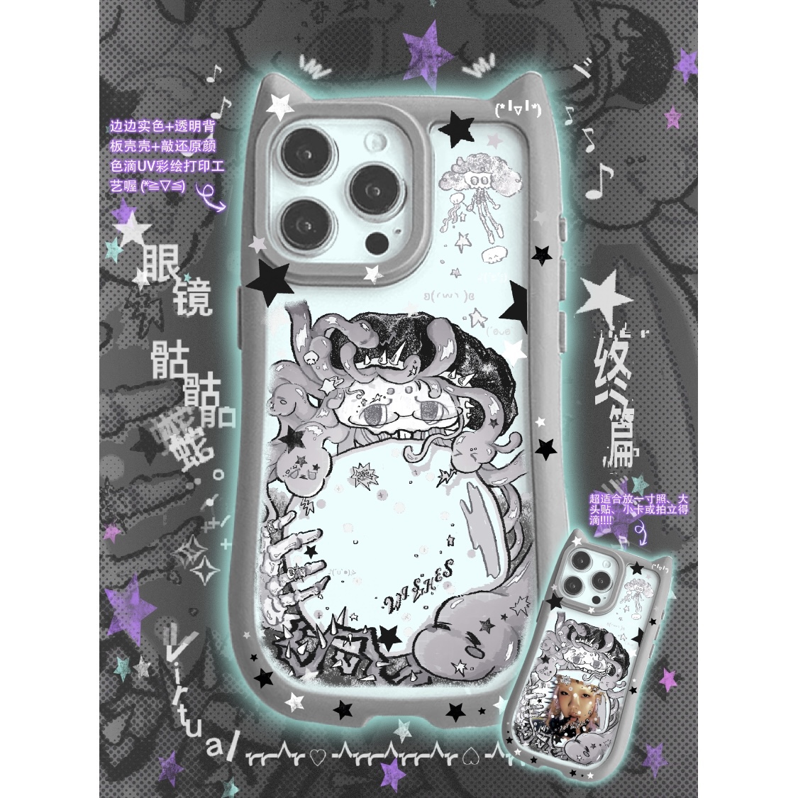 逃生原创小骷“小恶魔耳朵”手机壳y2k梦核插画古早mate华为iphone16promax安卓15苹果13透明12pro防摔14plus