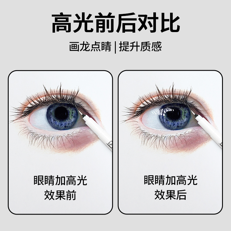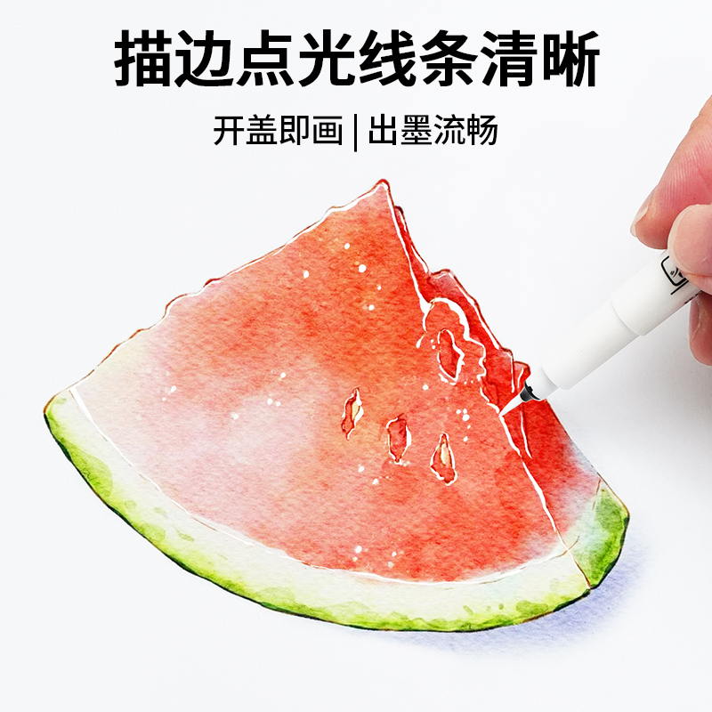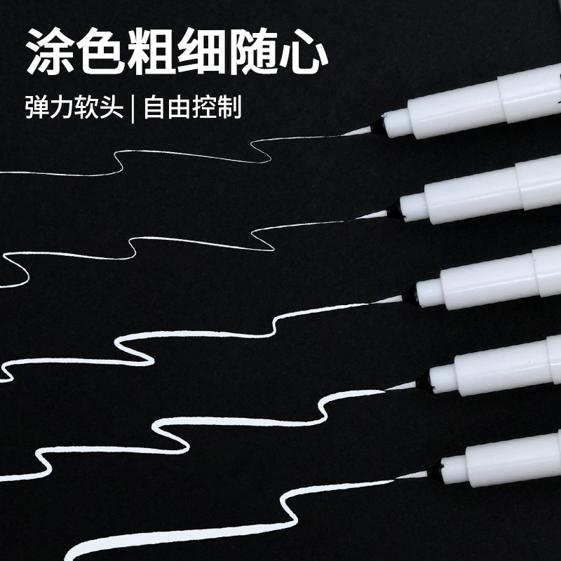 高光笔美术专用小学生白色勾线笔极细素描画画专用软头针管笔防水不晕染超细头描线漫画白色记号笔黑色软绘笔