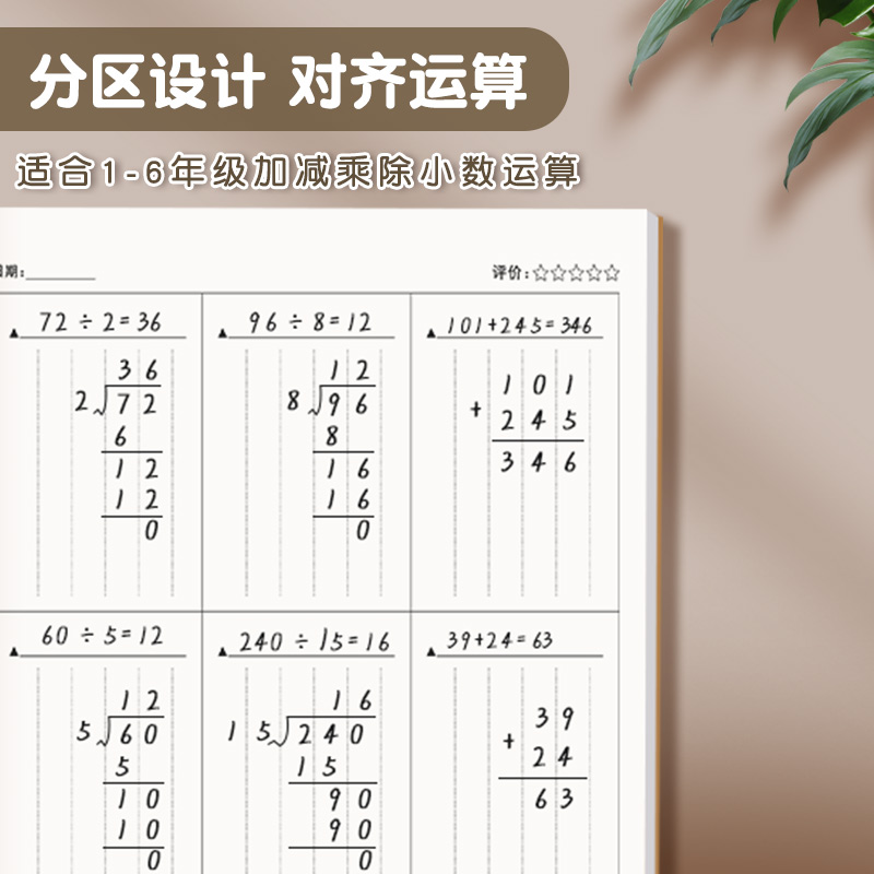 思进数学运算本小学生专用16k竖式加减法乘除法数位规范书写对齐纸数学计算演算草稿本口算运算作业练习本子