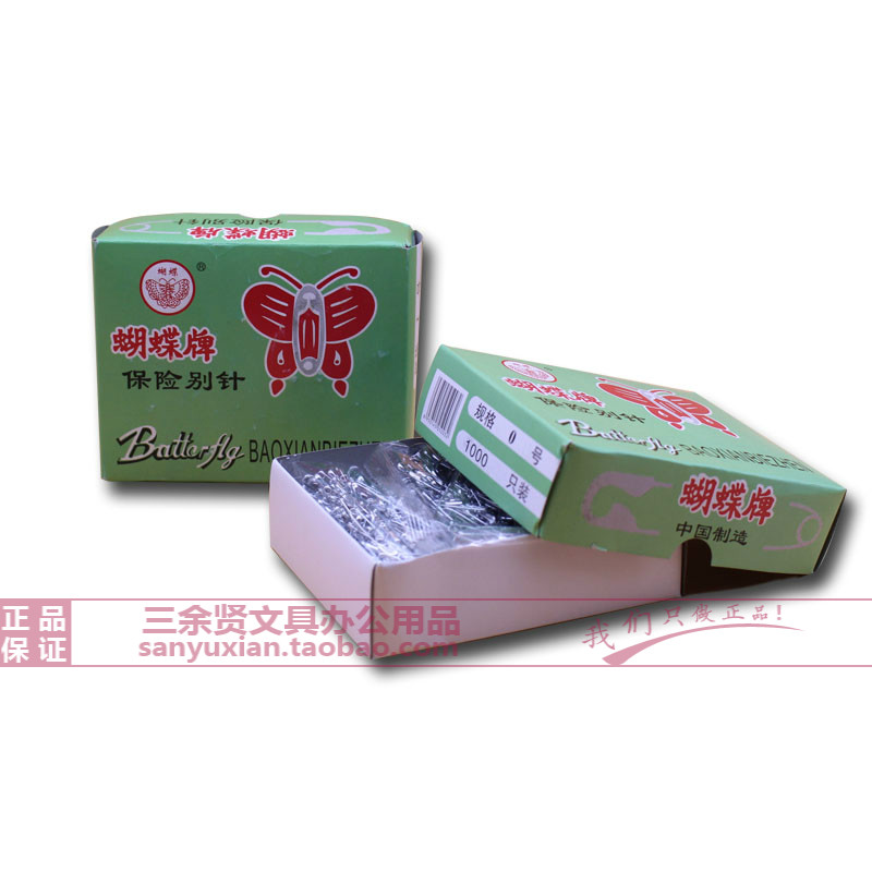 包邮蝴蝶牌保险别针0 1 2 3 4号镀镍45MM别针安全别针扣针1000个