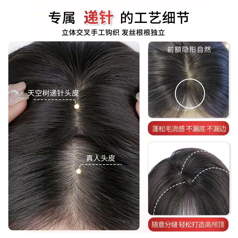 假发女片头顶真发增发量遮白发蓬松高颅顶自然无痕轻薄递针补发片