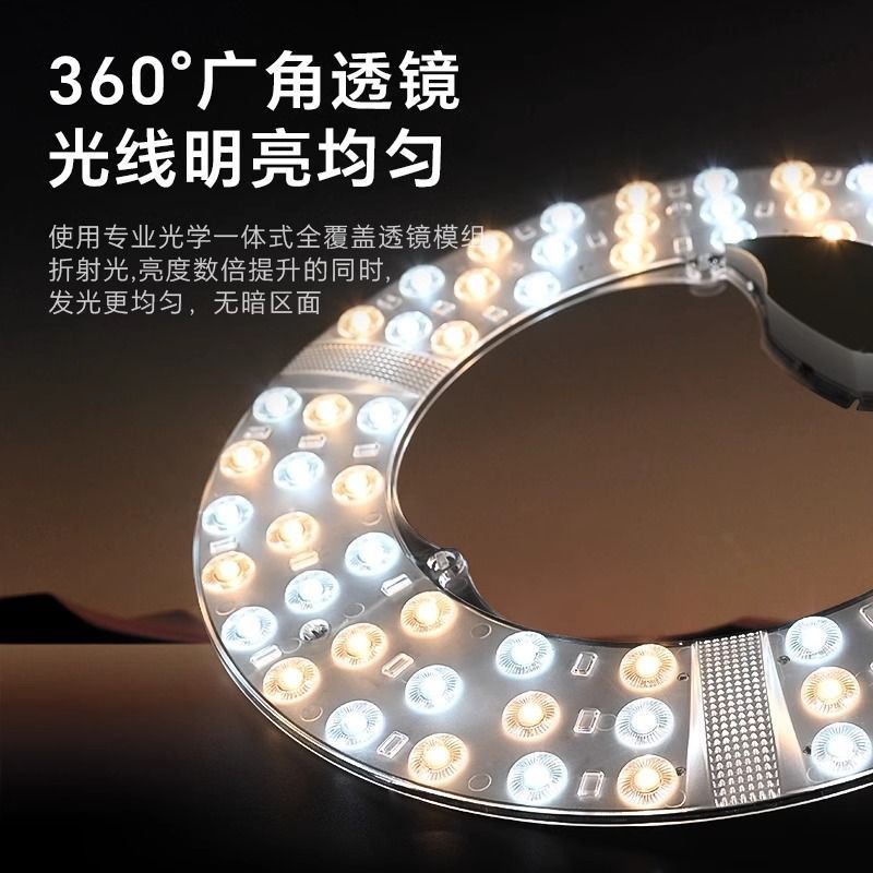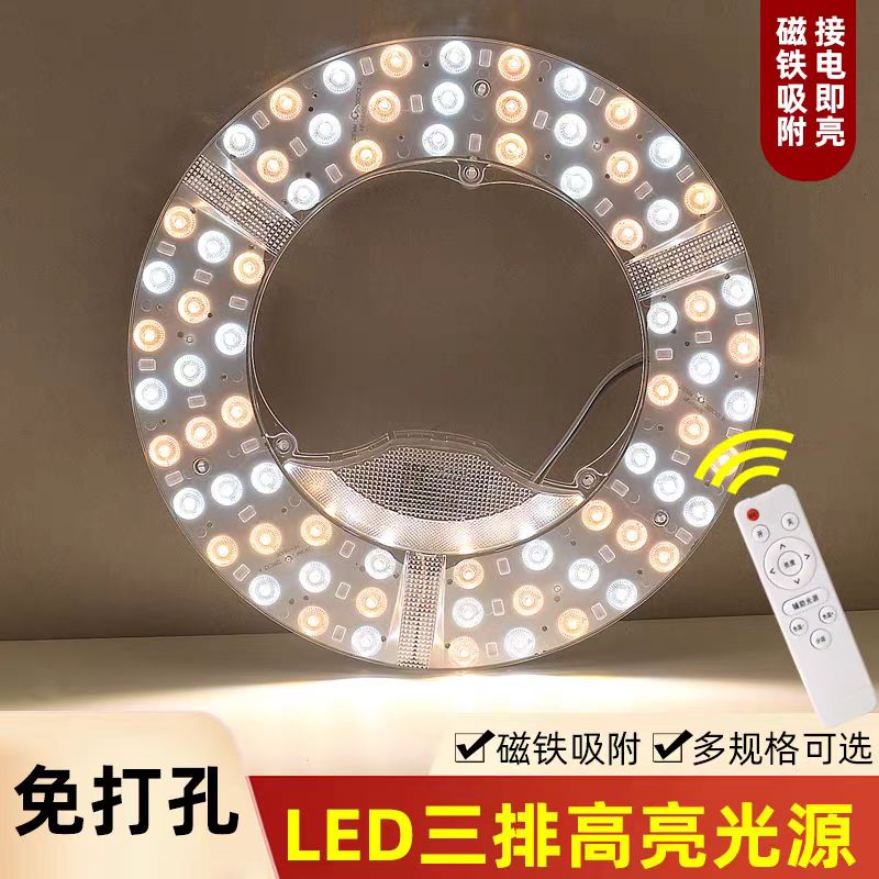 led灯盘吸顶灯灯芯磁铁吸圆盘灯泡替换客厅卧室三色灯板改造模组