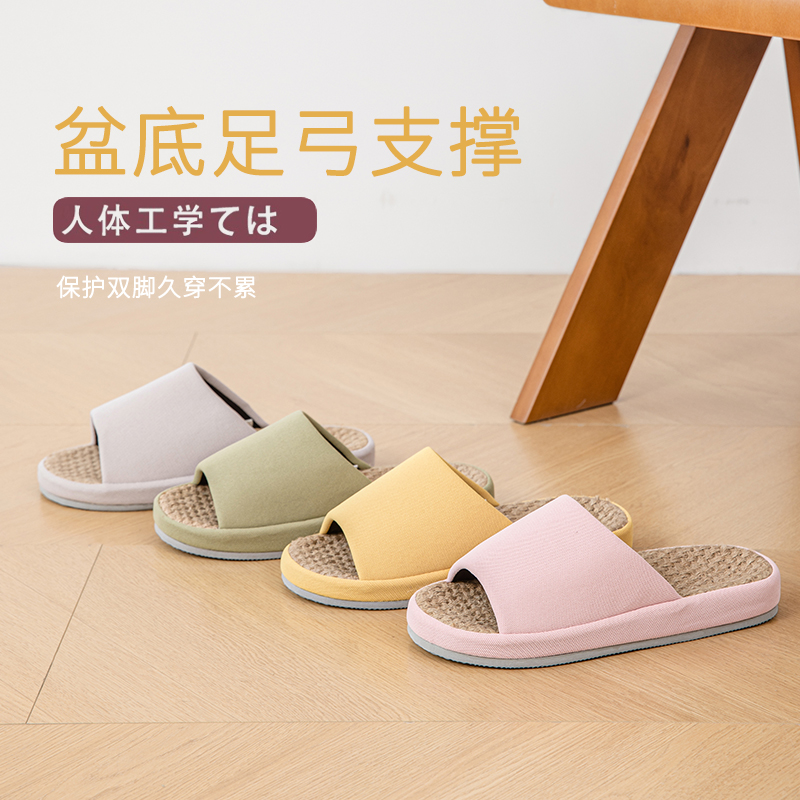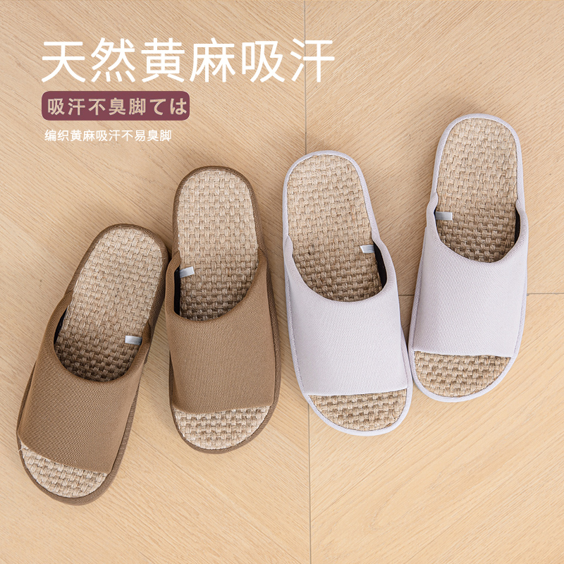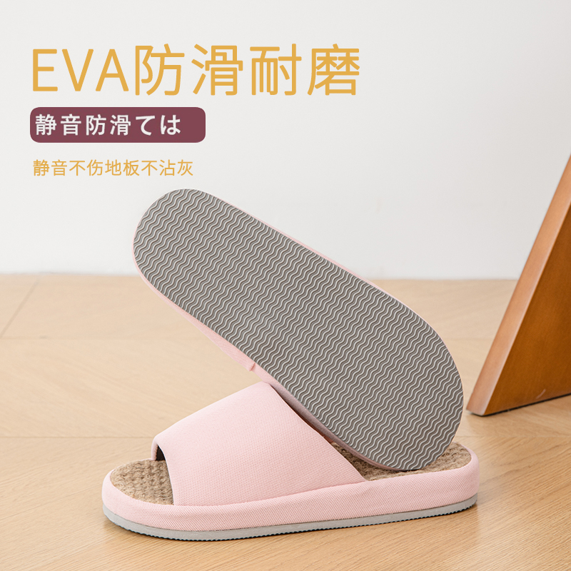 家用静音亚麻拖鞋女春秋季居新款木地板四季不沾灰透气防滑男厚底