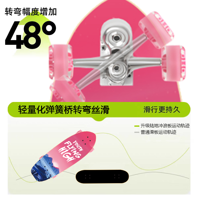 路冲板陆地冲浪板滑板儿童6一12岁8-15岁初学者女洛米成人免蹬地