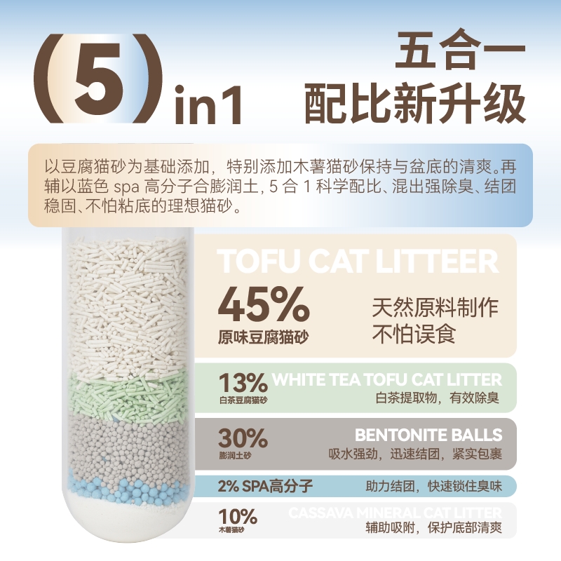 豆腐猫砂三合一除臭吸水混合猫砂高效结团膨润土科学配比猫砂低尘