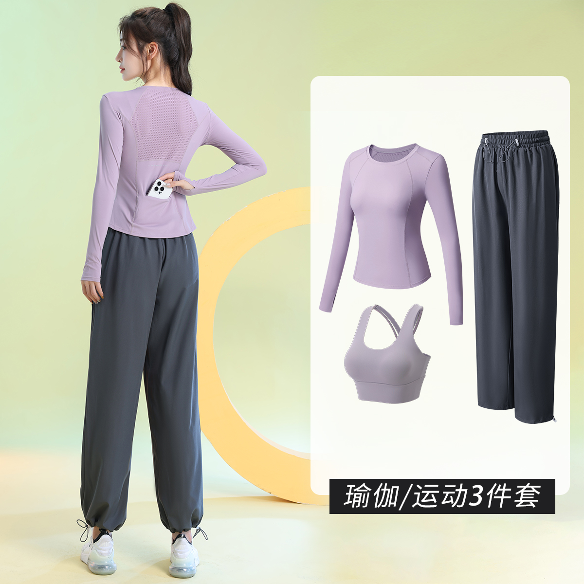 跑步运动服套装女秋冬后口袋放手机羽毛球服户外羽毛球跳操瑜伽服