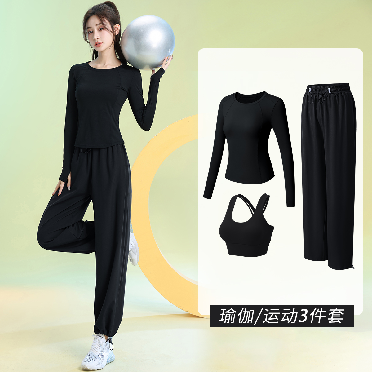 骆驼瑜伽服套装女春季跑步休闲透气运动服修身速干训练健身两件套