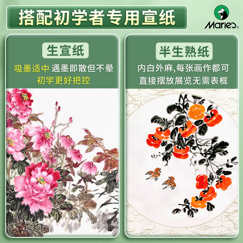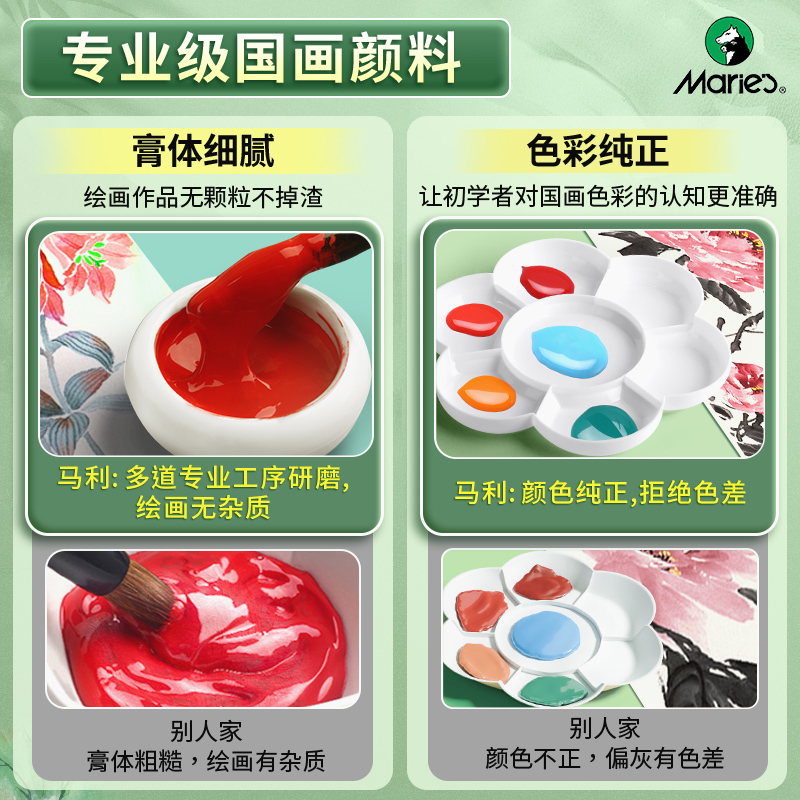 马利牌国画颜料初学者套装12色中国画用品工具全套24色水墨画工笔画专用画画毛笔入门材料官方旗舰店玛丽马力