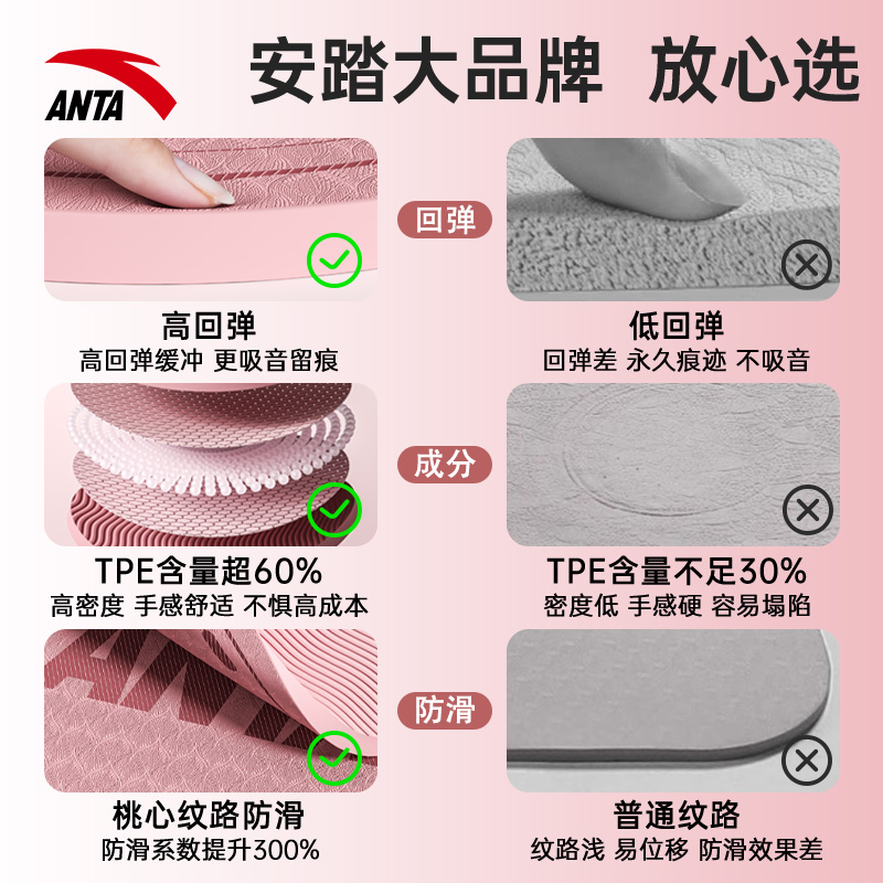 特步瑜伽垫健身垫家用女生2025新款专业防滑减震静音加厚加宽地垫