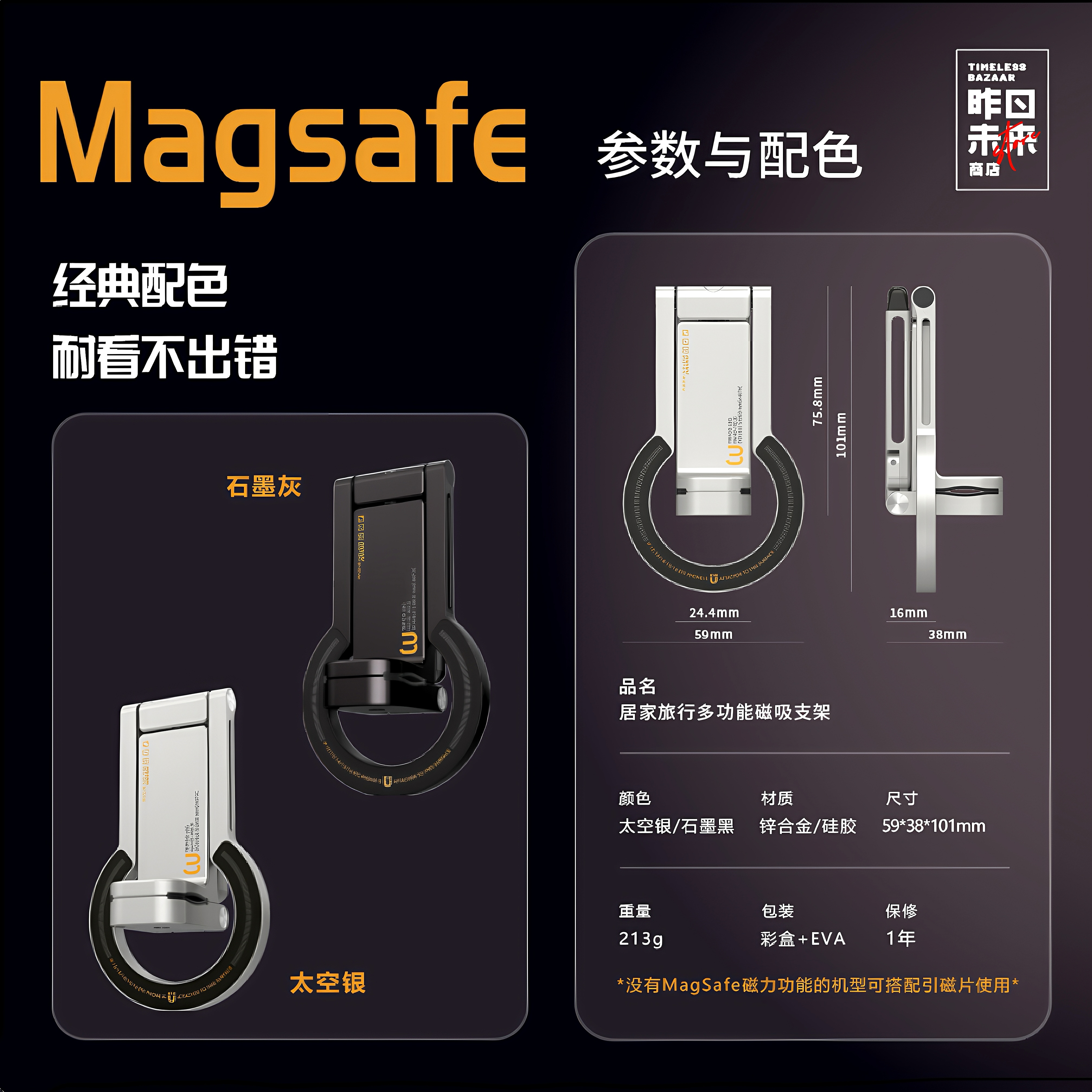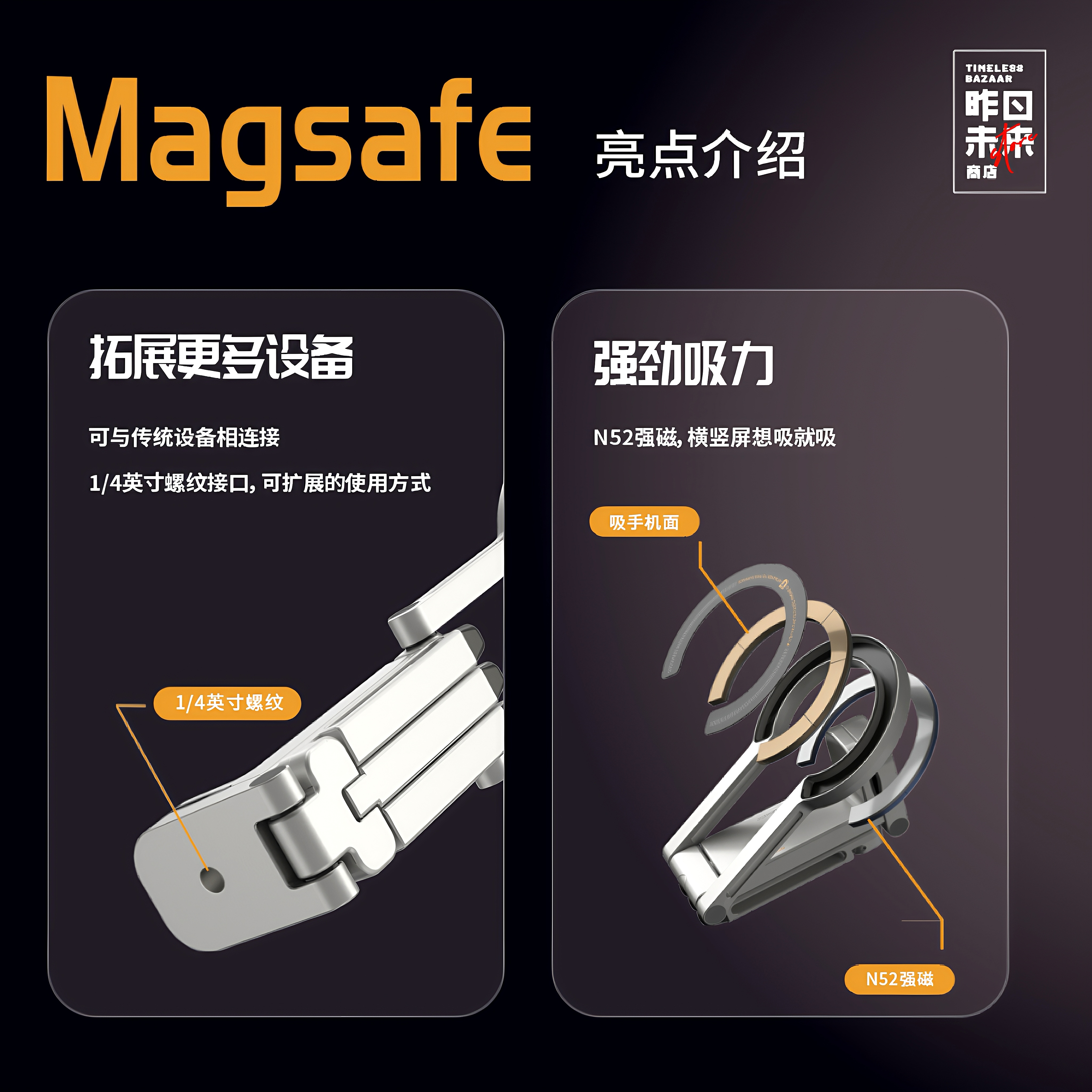 半旅手机磁吸支架Magsafe桌面支架自拍杆可夹可放适用苹果安卓