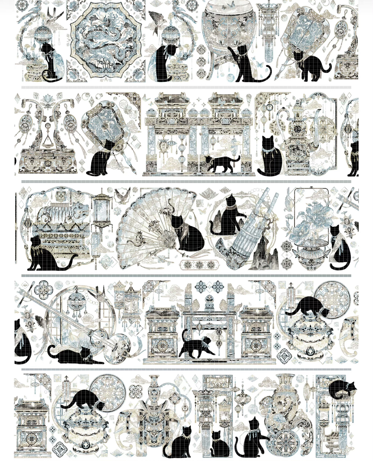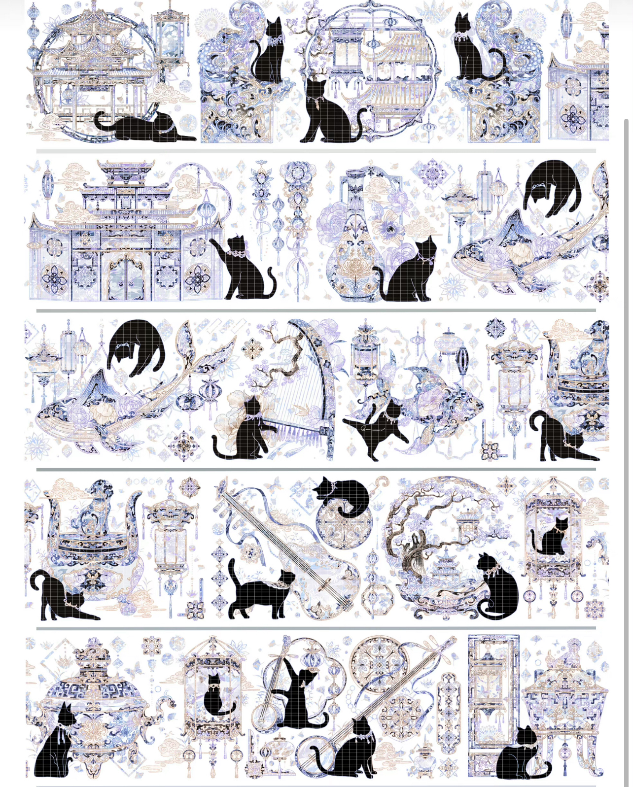 巫女分装胶带国潮唐宋元明清古风背景猫流麻咕卡手账胶带贴纸素材