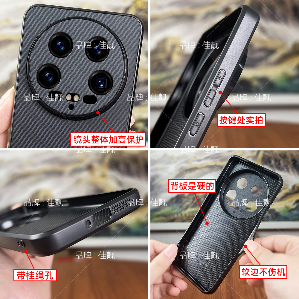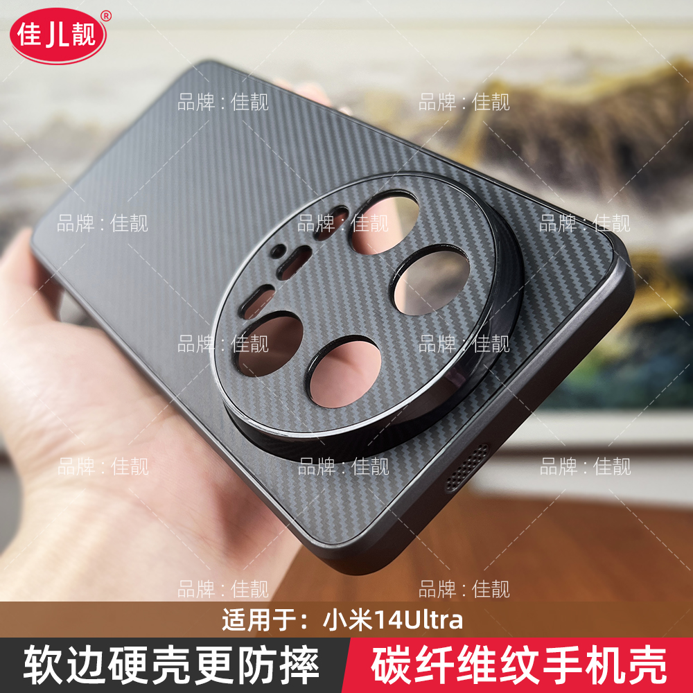 适用于小米14ultra碳纤维纹理手机壳小米14至尊版镜头全包防摔保护套xiaomi软边硬后壳新款皮纹外壳