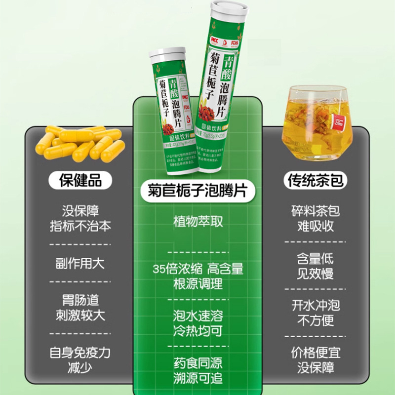 菊苣栀子泡腾片根尿酸茶高利尿柠檬酸盐降茯苓酸友饮排