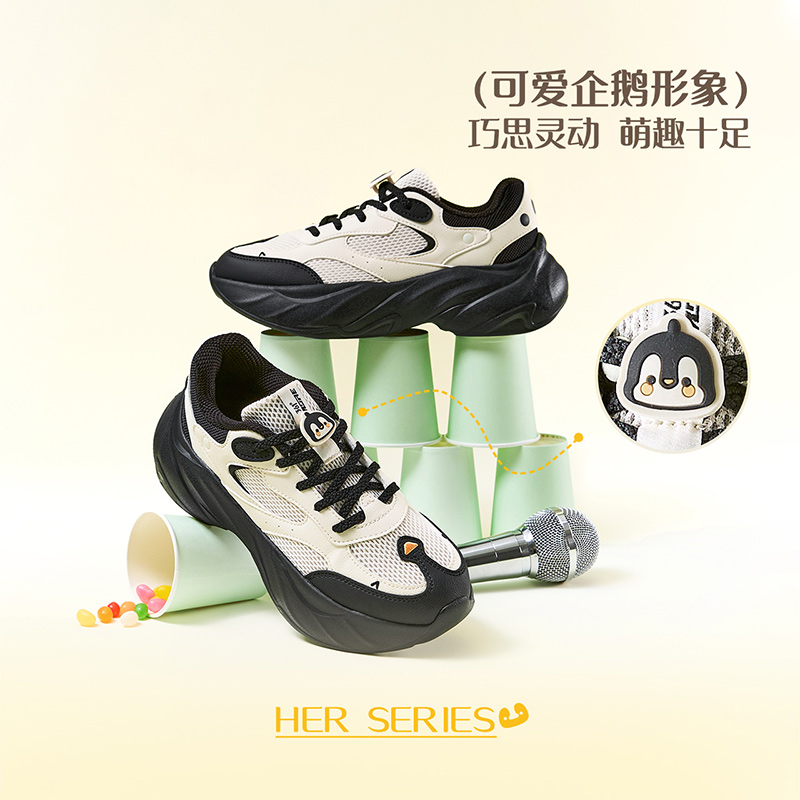 企鹅鞋361运动鞋女2025秋季新款网面透气复古老爹鞋休闲鞋子女鞋