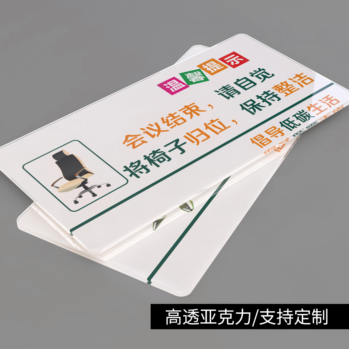 会议结束请将椅子归位提示办公室节约用电标识牌亚克力节能标志牌节约用水温馨提示牌