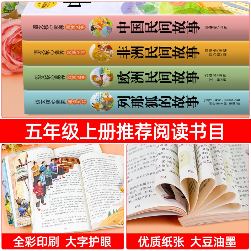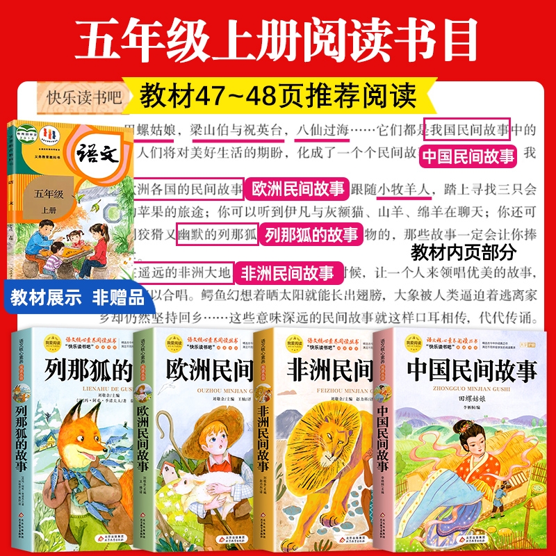 全套4册中国民间故事五年级上册必读正版的课外书田螺姑娘精选欧洲非洲列那狐的故事快乐读书吧五上阅读书籍人教版书目5经典童话