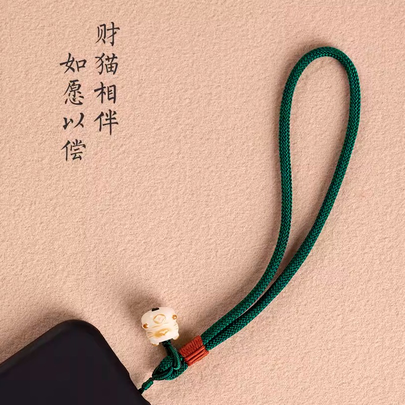 菩提招财猫手机挂绳手机链手腕绳吊坠挂件精致U盘挂饰手机壳绳子