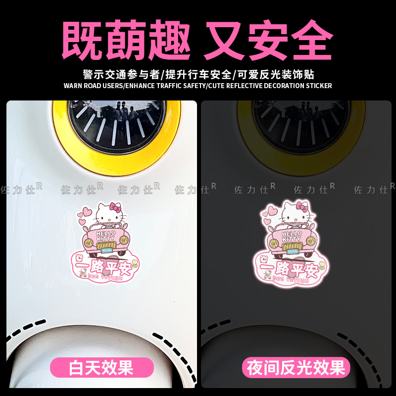 凯蒂猫电动车装饰夜间反光贴安全警示摩托汽车个性车贴纸划痕遮挡