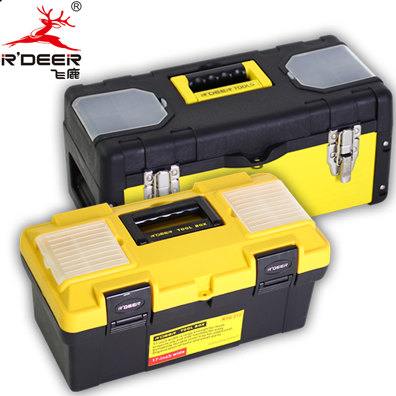 飞鹿工具新型塑铁工具箱塑料不锈钢零件工具收纳箱手提箱安全箱