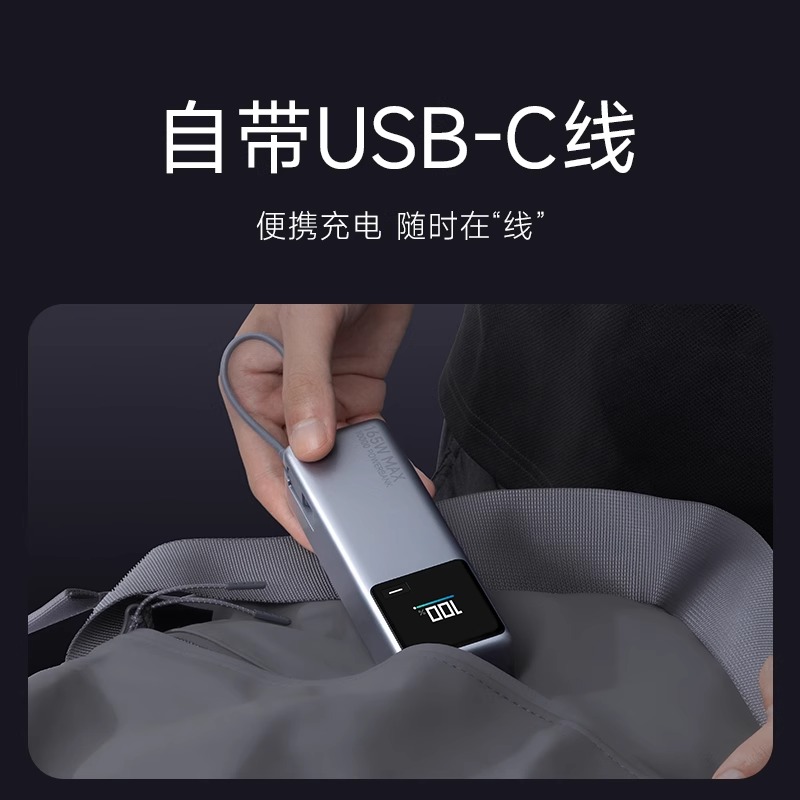 【充电宝3c认证可上飞机】倍思20000毫安官方2025新款快充大容量自带线移动电源小巧便携适用小米苹果专正品