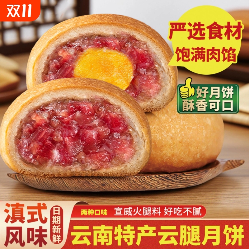 云南特产火腿月饼宣威云腿小饼滇式酥皮传统手工中秋50g礼盒送人