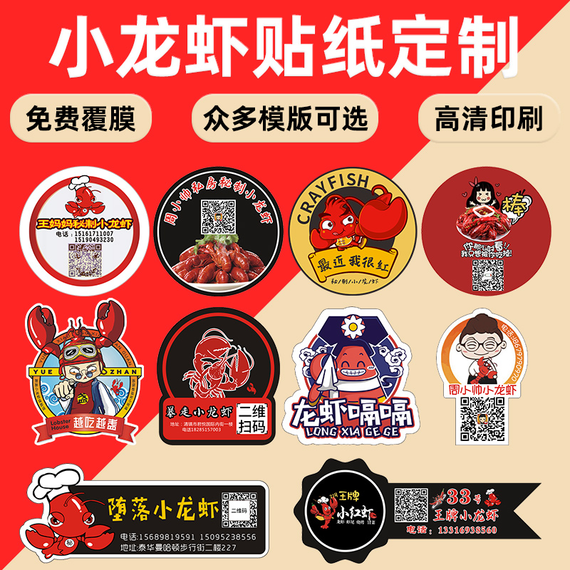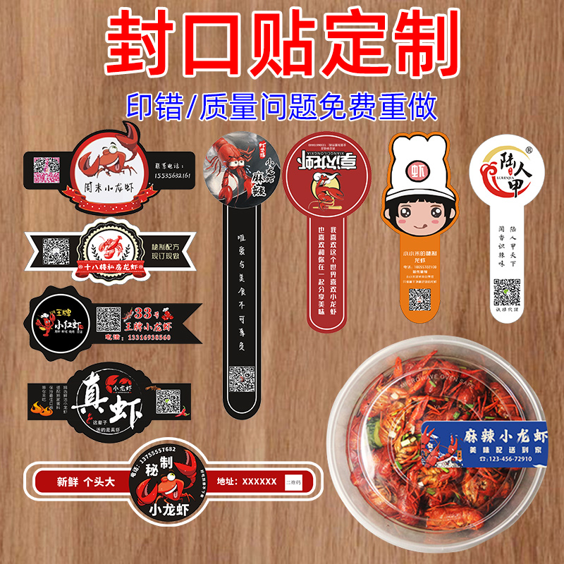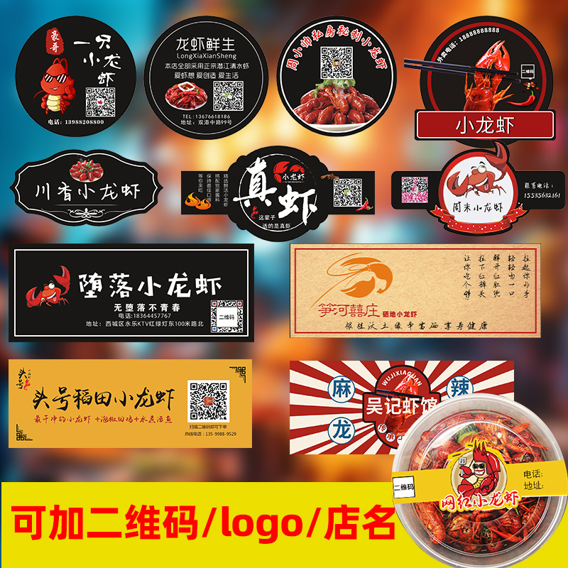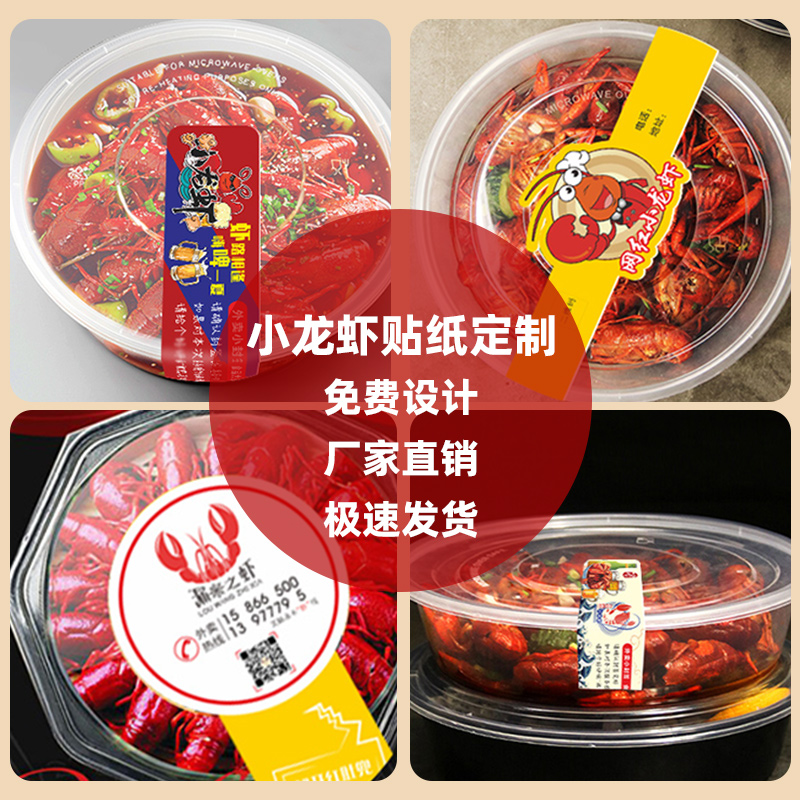 小龙虾打包盒贴纸定制餐盒包装广告不干胶标签打印餐饮二维码商标封条标贴定做麻辣小海鲜外卖封口贴logo设计