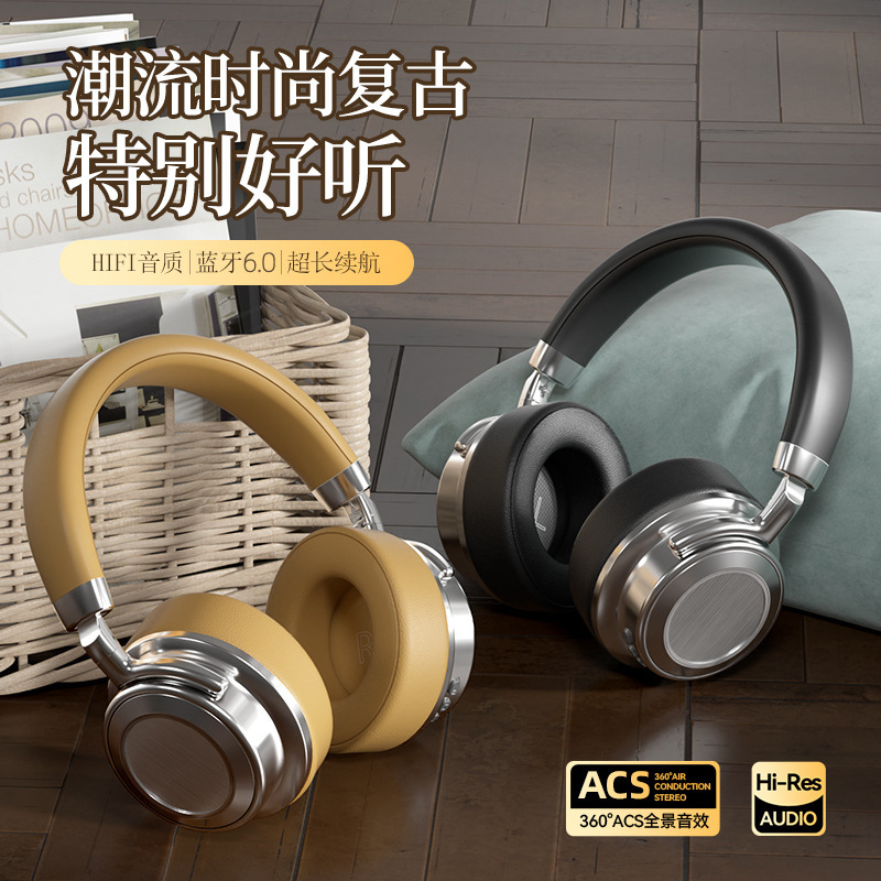 日本品质爆款CR-9复古风金属头戴式无线蓝牙耳机6.0运动时尚穿搭