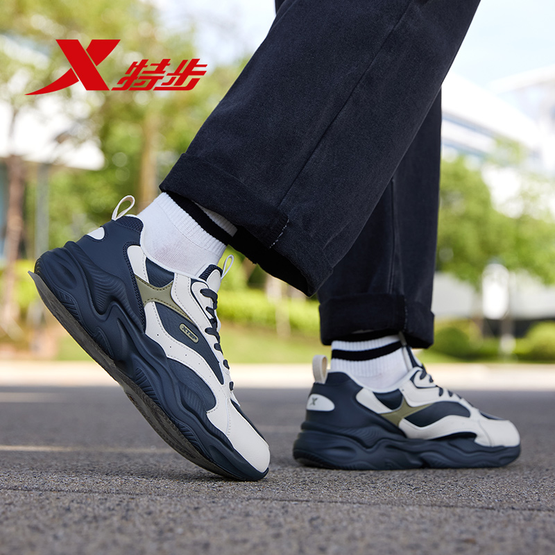 特步男鞋青少年运动鞋男皮面老爹鞋软底减震百搭运动休闲鞋男学生