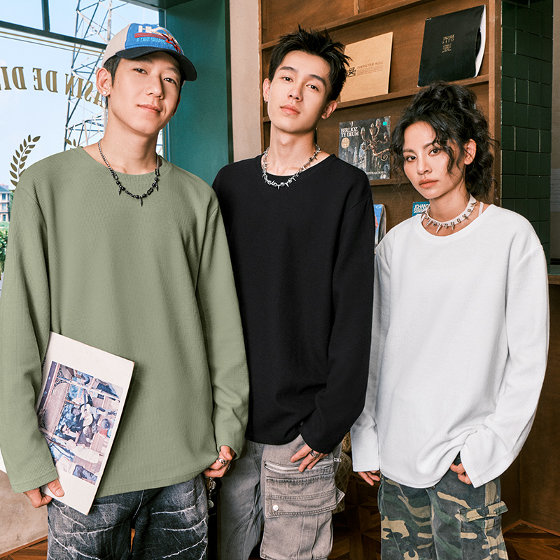 INS纯棉25韩国ins复古基础款纯色秋季打底衫内搭男女长袖T恤bf风