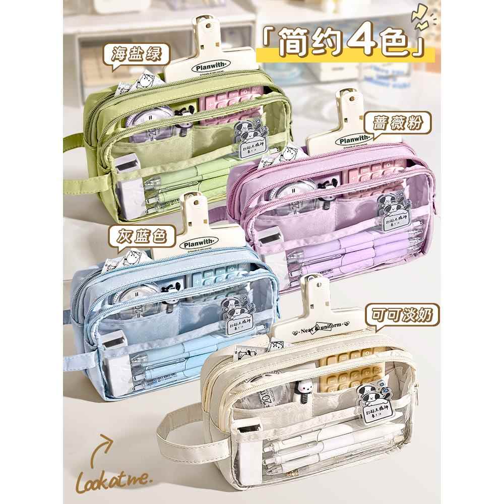5层超大容量透明笔袋初中专用女孩子ins风日系高颜值女生小学生简约高中生中学生文具盒铅笔盒多层文具袋男孩